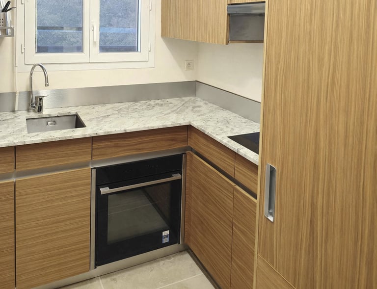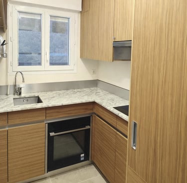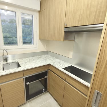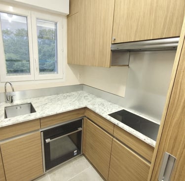 Rénovation et fabrication d'une cuisine sur mesure dans un espace réduit,